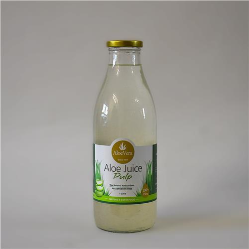 Aloe Pure 99.9% Natural Crush Aloe Vera Juice is full of nutritious pulp, and makes and ideal general tonic for everyday use. The Aloe Vera is grown without herbicides or pesticides, and is hand processed to retain near identical levels of purity, and benefit of a fresh leaf. Contains no added colouring or sweeteners.