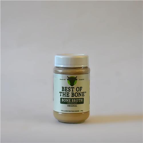 Best of the Bone Beef Bone Broth Concentrate is an all-natural grass-fed beef bone broth concentrate that is a true collagen, mineral and amino acid-rich living gelatin. It uses only the leg bone for their high marrow content, which are crushed and then cooked in a pressure cooker to create a thick, highly concentrated bone broth extract. It’s made up of nearly 40% collagen protein, which is absorbed at a much higher rate than other collagen sources, thanks to important healthy fats (the most efficient fuel source for your body and critical for the absorption of vitamins and micronutrients by the body). It makes for an incredibly healthful snack when added to a mug of hot water (also delicious with added vegetables and a little spice) or can be used as a base for soups and sauces.