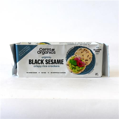 Ceres Organics Black Sesame Rice Crackers are made with naturally gluten-free ingredients, containing no additives, artifical flavours or preservatives. Ingredients Certified Organic White Rice Flour, Certified Organic Tamari Soy Sauce (Certified Organic Soybeans, Water, Salt), Brown Rice Flour, Black Sesame (2.5%). Nutrition Information