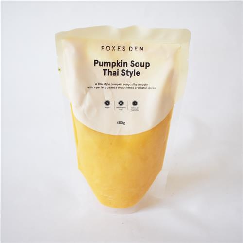 | Pumpkin, stick (water, natural vegetable stock), coconut cream, red curry paste (lemongrass, red chilli, galangal, palm sugar, garlic, soybean oil, salt, shallot, spices (cumin, coriander seed), sugar, coriander root, kaffir lime leaf, yeast extract, lemongrass, garlic. |