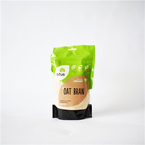 Lotus Oatbran is low in saturated fat, sodium and sugar. It is a good source of dietary fibre. Organic Oatbran.