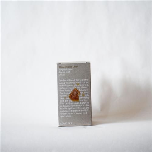Ingredients: Organic Australian Bush Honey, Organic Black Tea, Organic Cinnamon, Organic Gingers, Organic Cardamom, Organic Turmeric, Organic Star Anise, Organic Cloves, Black Pepper, White Pepper.