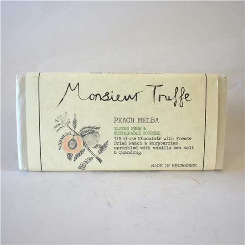 | Sugar, cacao butter, whole milk powder, vanilla, freeze dried raspberries, freeze dried peach, quandong, sea salt, sunflower lecithin. |
