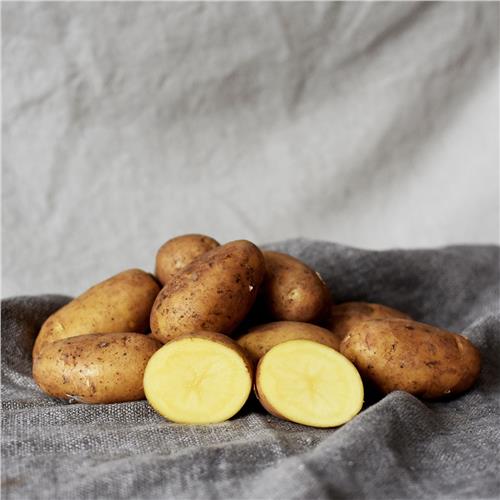 Dutch Cream Potatoes, with thier waxy yellow flesh and thin skin are popular for their rich and buttery flavour. They’re a versatile spud, but are particularly well suited to roasting.